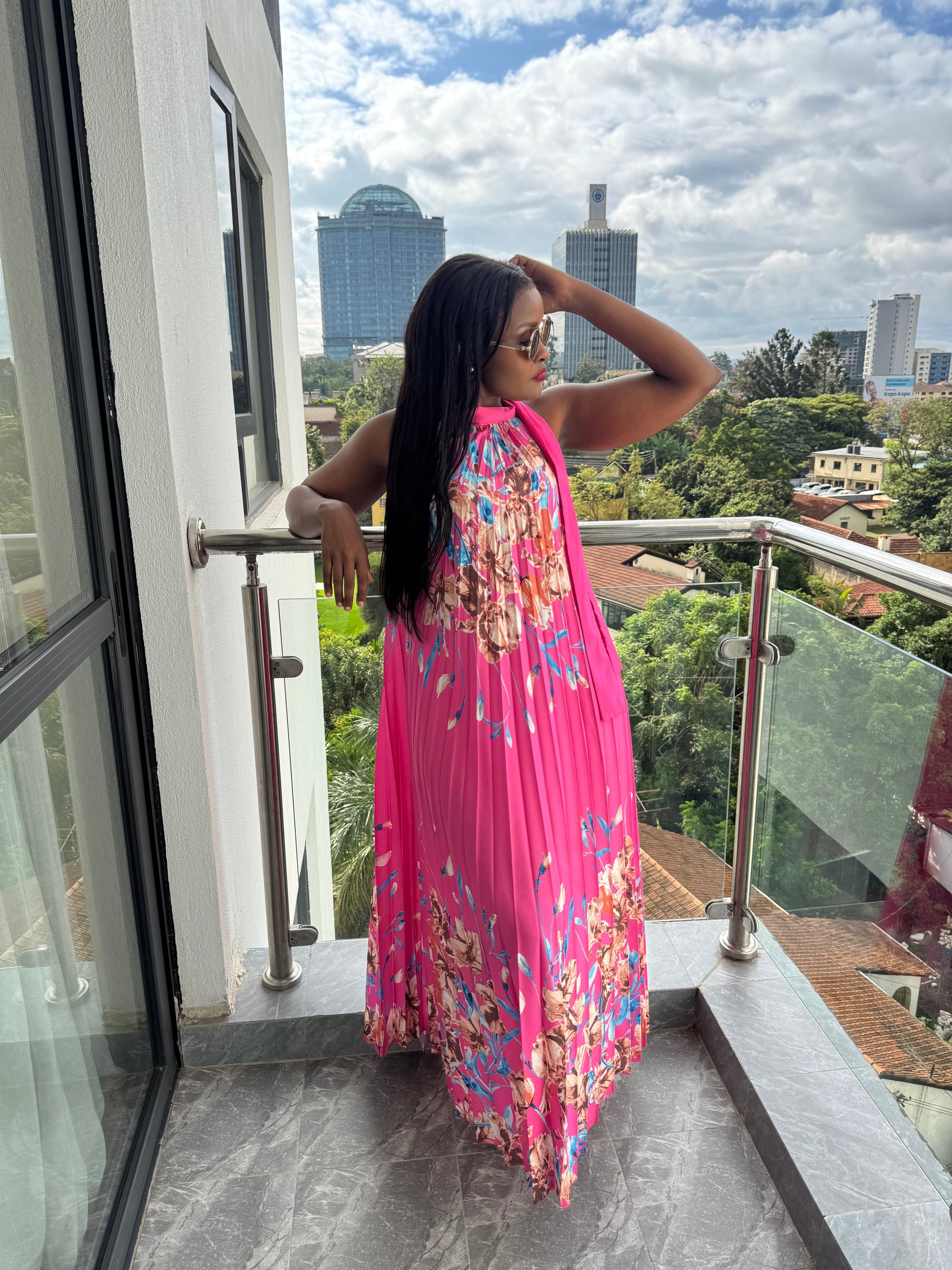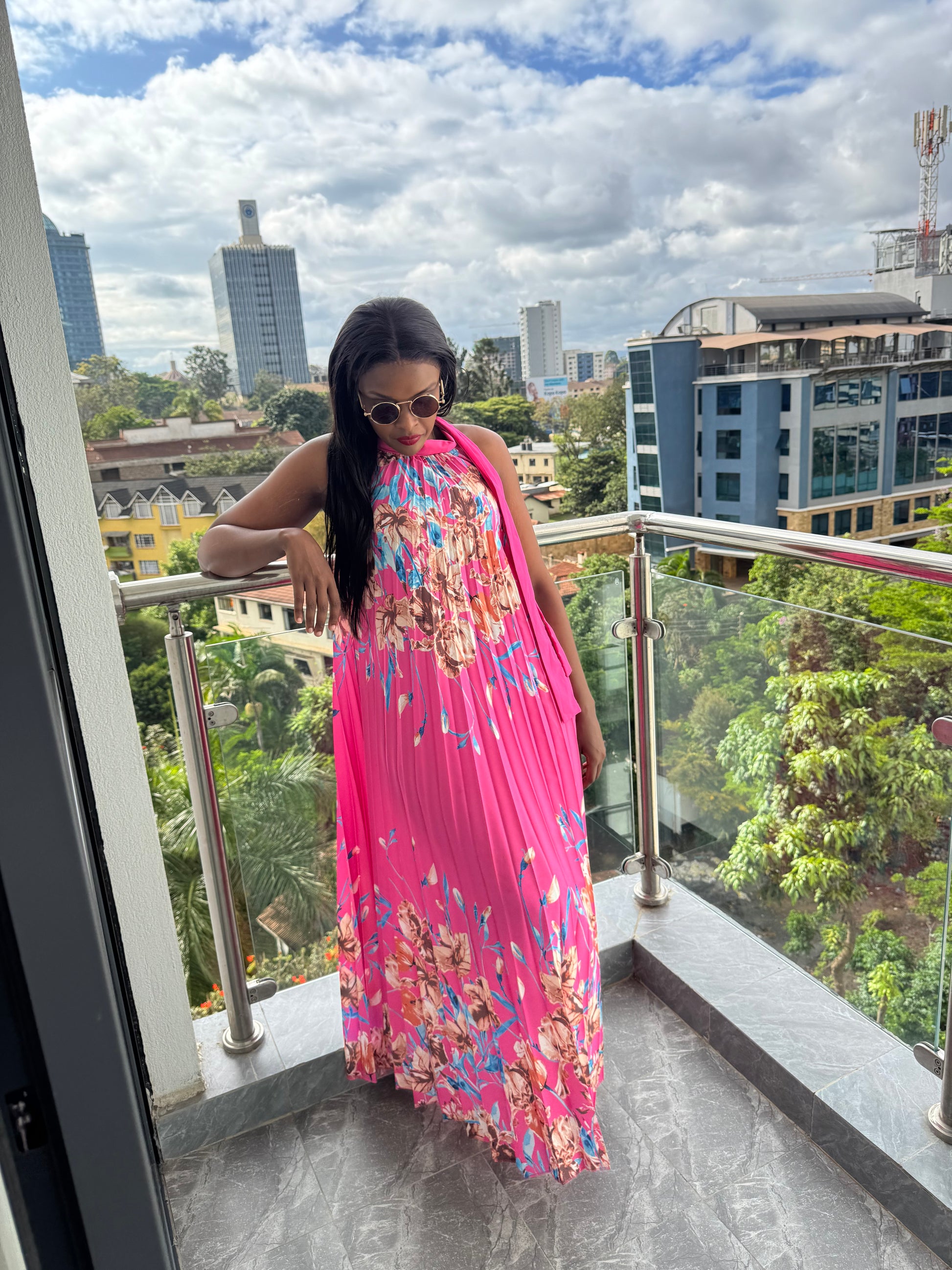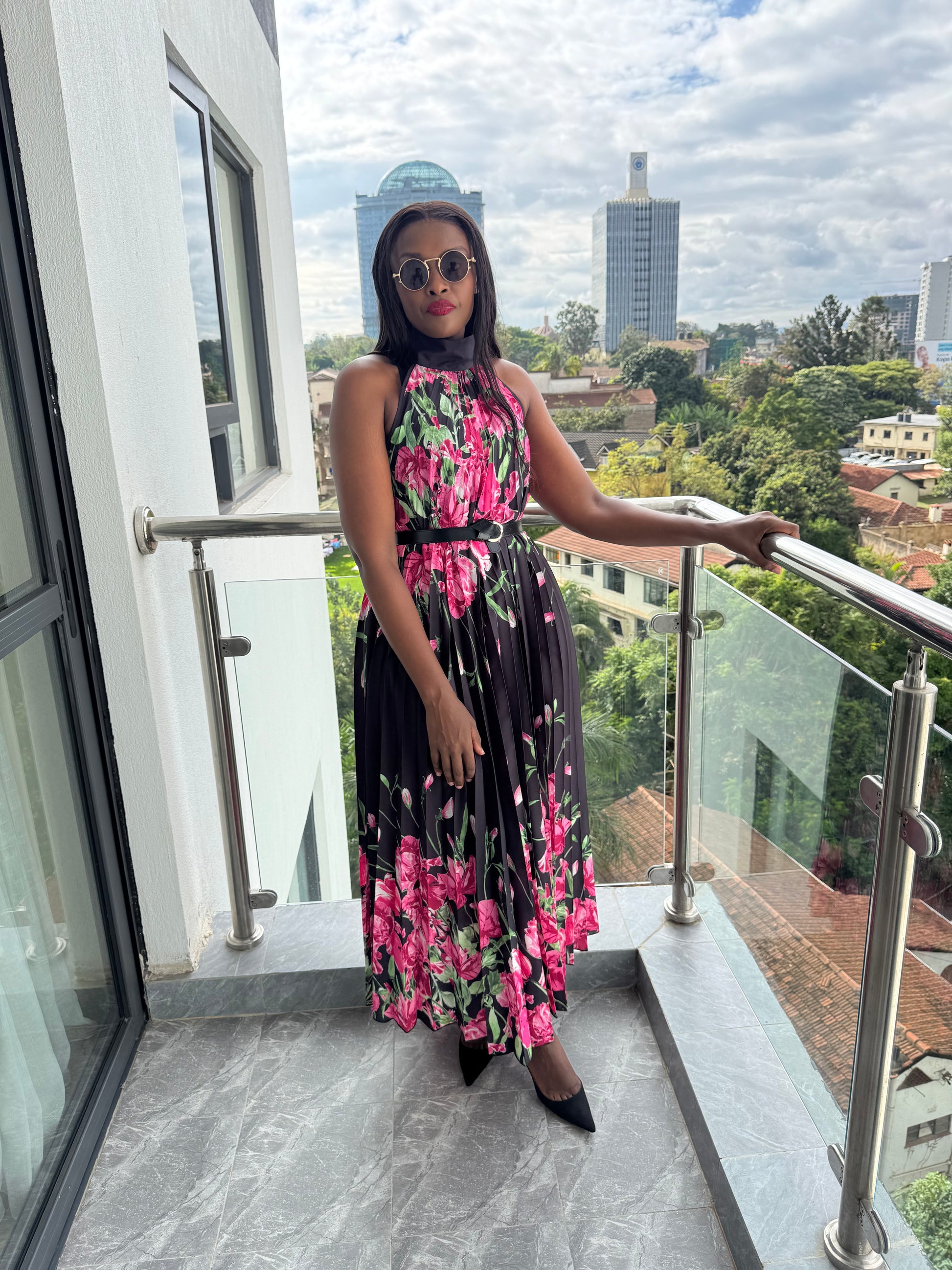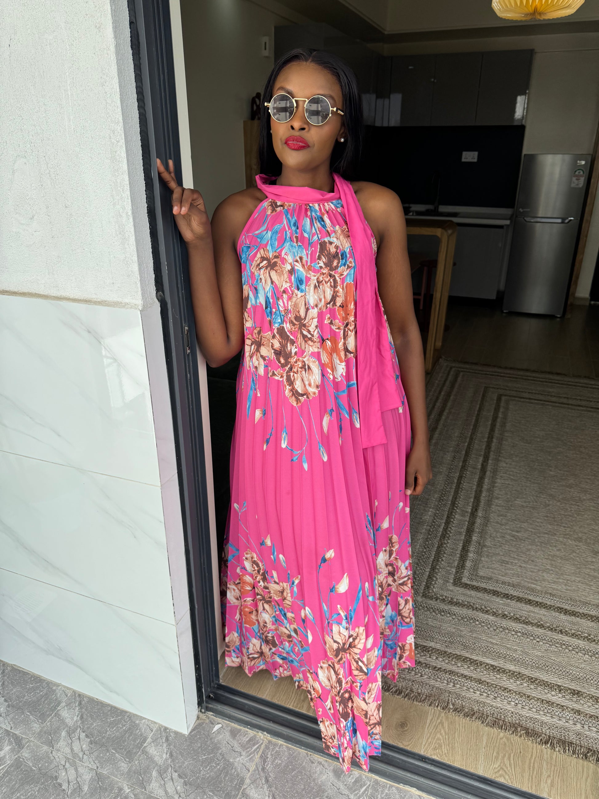 Finished with a delicate floral print and a neck-tie detail that fastens at the back, the fit can be adjusted for comfort and ease. Whether worn for a weekend outing, brunch, a garden event, or a more formal occasion, this is a piece that transitions seamlessly.