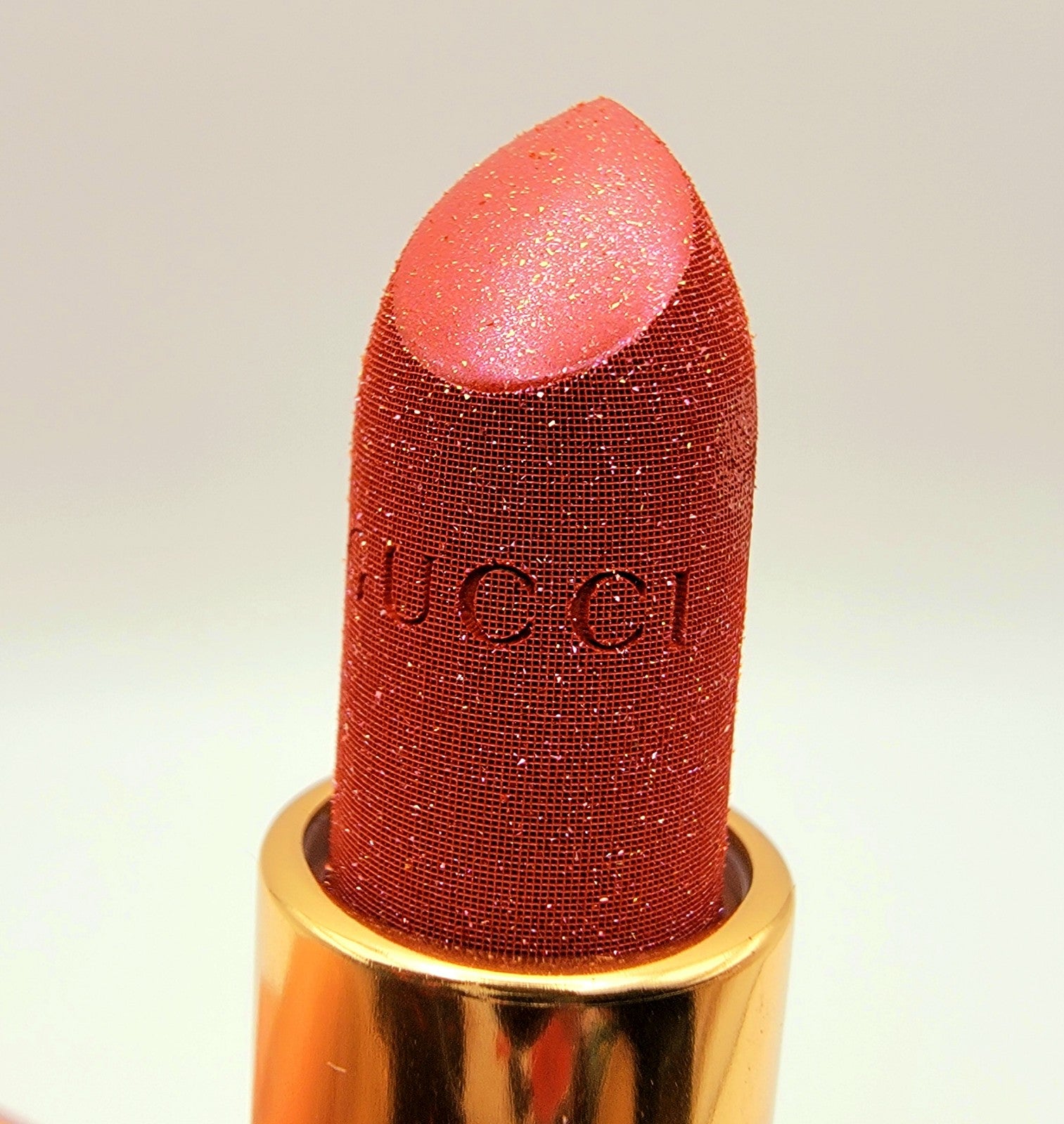 What it is: A warm red (with neutral-orange tones) rouge à lèvres lunaison, featuring a glitter finish, inspired by the beauty and magic of the holiday season